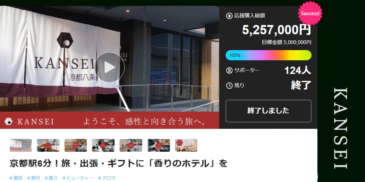 応援購入サービスMakuakeでは、目標を大きく上回る500万円超のご支援をいただきました。皆さまからの応援を力に、香りによる新たな体験価値の創出とともに、ホテル滞在をより深く楽しんでいただける香りのコンテンツ企画を引き続き進めて参ります。