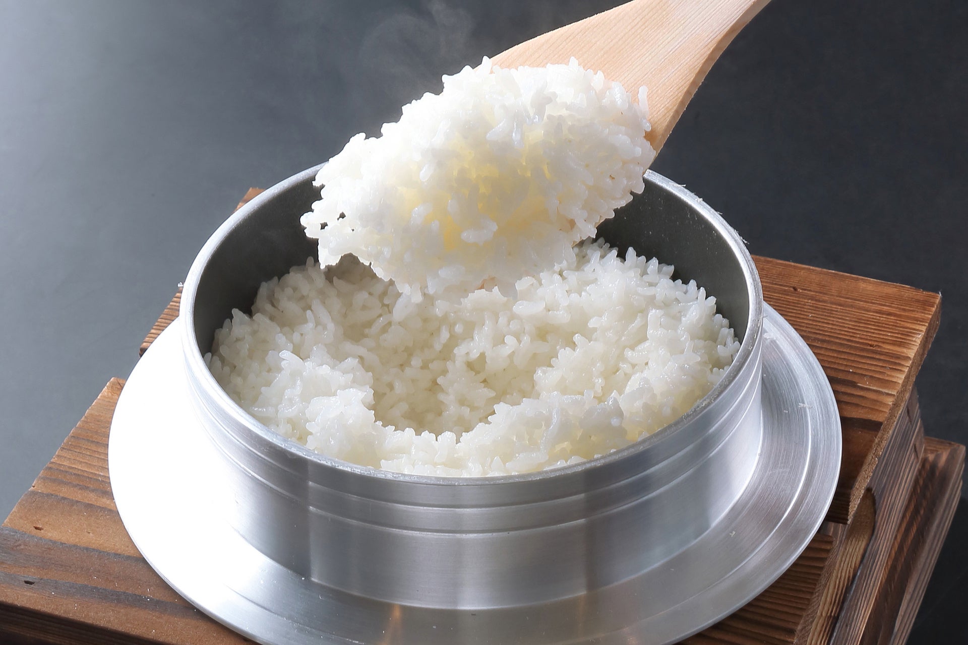 コースの〆は釜でふっくら炊き上げた銀シャリと、季節のフルーツを使ったデザートをご用意いたします。