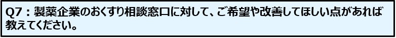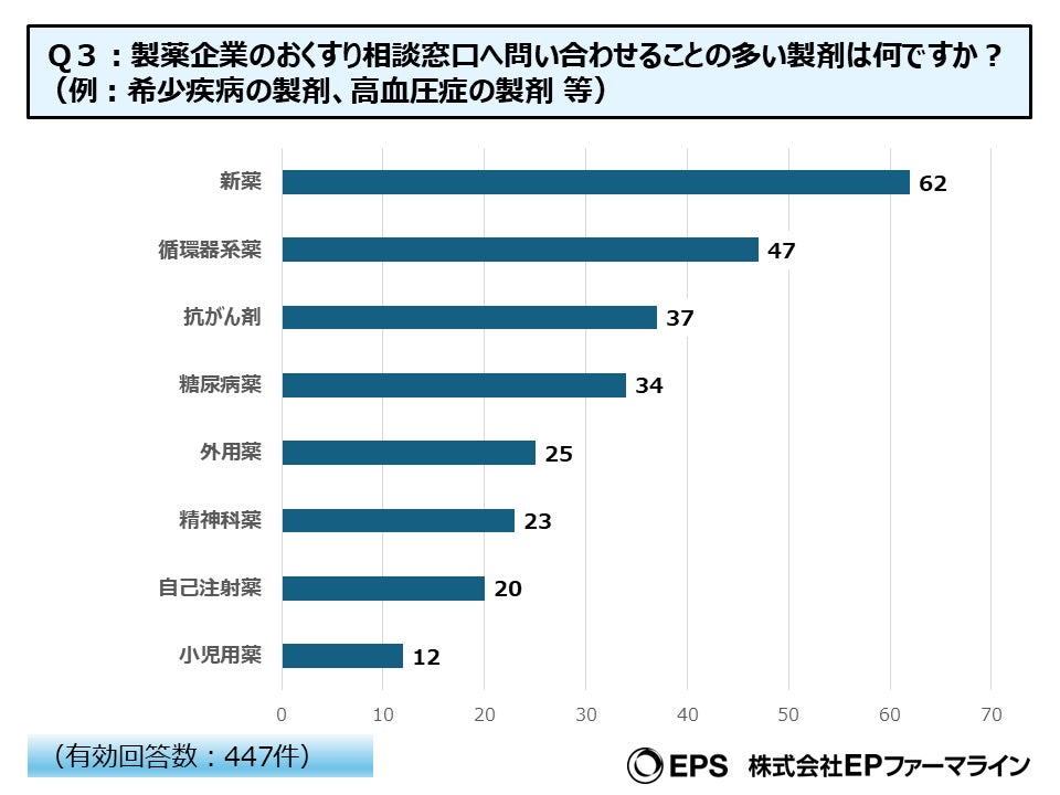 これらの結果から、製薬企業のおくすり相談窓口は、新薬や自己注射など専門的な知識が求められる薬剤に関する情報提供の場として重要な役割を果たしていると推察されます。