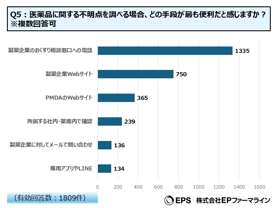 医薬品の不明点を調べる際に便利な手段として、約74%の方が「電話が便利」と回答されました。