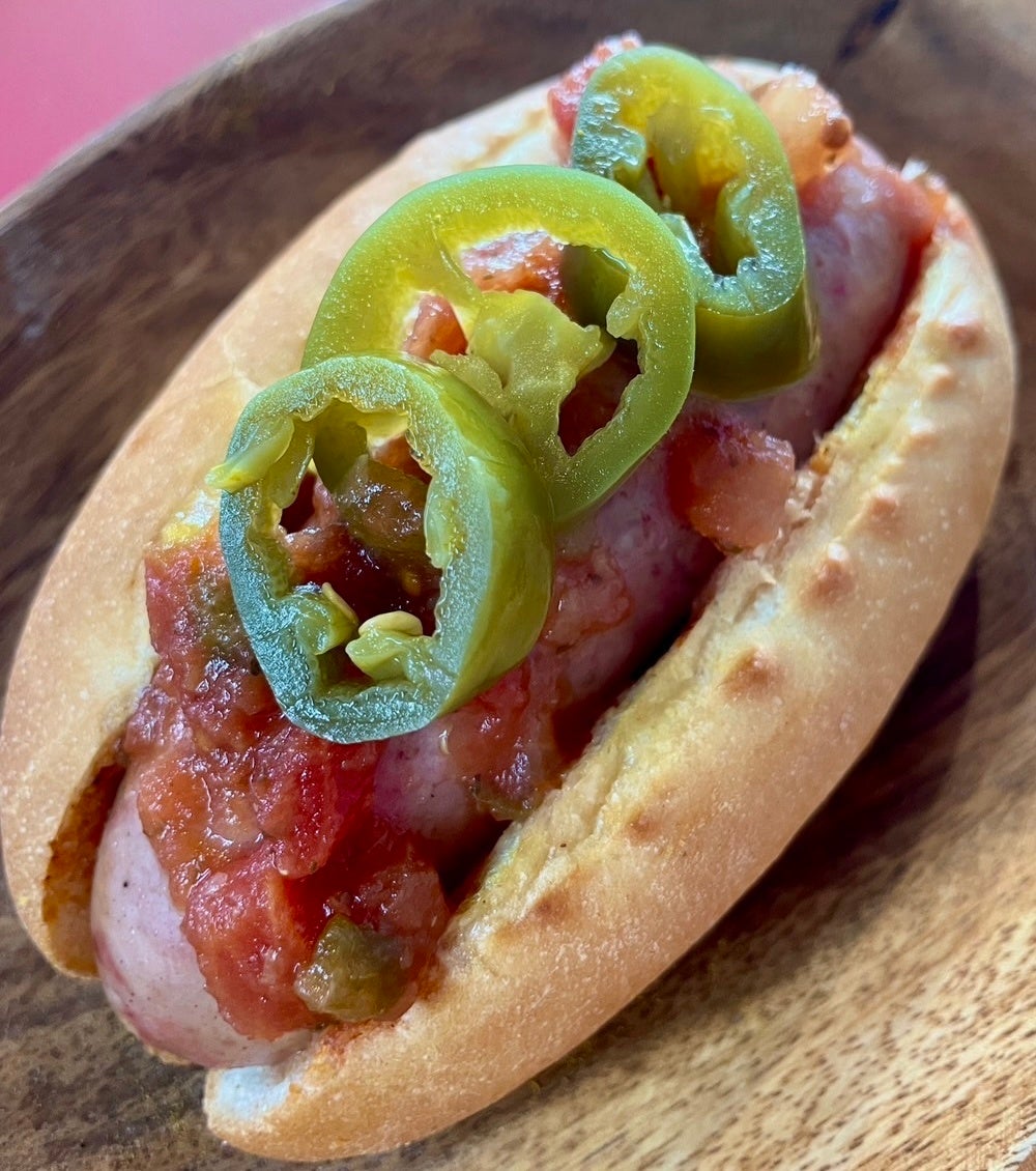 スタッフ一押しはホットチリ。サルサソースにハラペーニョの輪切りをトッピングした酸っぱ辛い味わいで、ジューシーなフランクフルトによく合います!