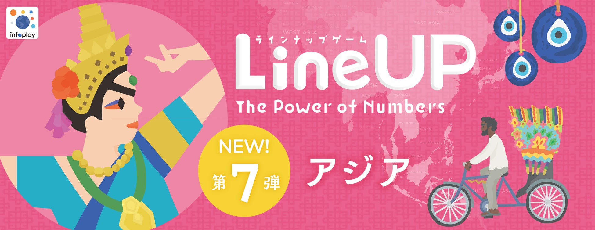 学びを生み出す遊びをつくるクリエイティブユニットinfoplay(インフォプレイ 所在地:東京都渋谷区)は、『LineUP』(ラインナップ)ゲームシリーズの第7弾【LineUP⑦アジア】を、2026年2月20日(金)に発売いたします。2025年キッズデザイン賞を受賞した本シリーズが今回のテーマとしたのは、多様な文化と伝統が息づく「アジア全域」です。