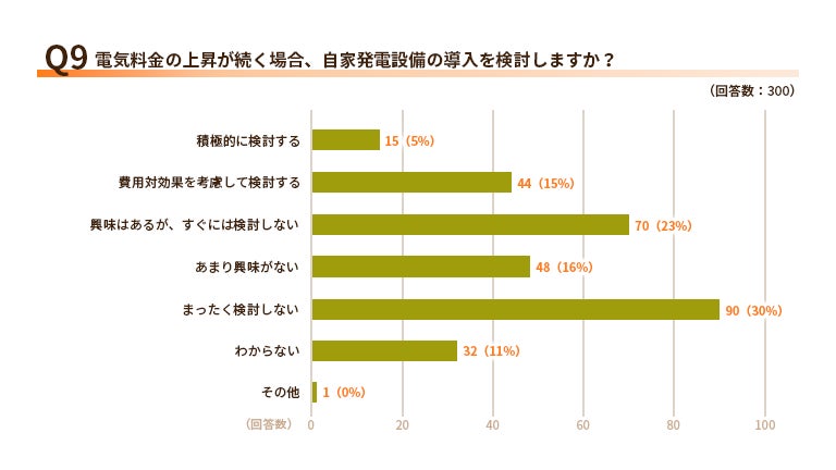 Q9. 電気料金の上昇が続く場合、自家発電設備の導入を検討しますか?