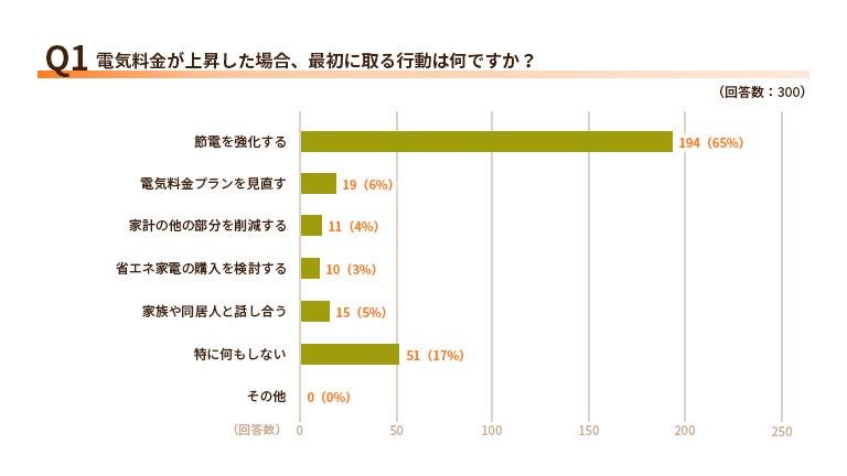 Q1. 電気料金が上昇した場合、最初に取る行動は何ですか?