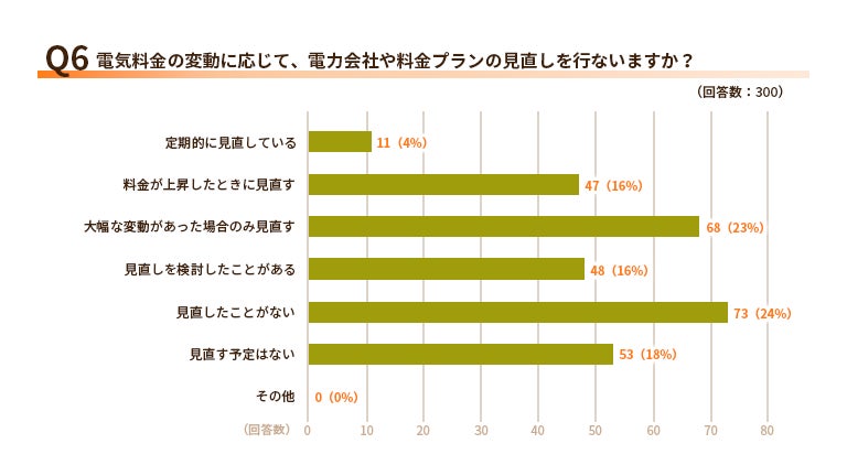 Q6. 電気料金の変動に応じて、電力会社や料金プランの見直しを行いますか?