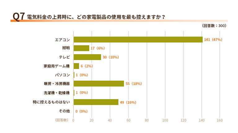 Q7. 電気料金の上昇時に、どの家電製品の使用を最も控えますか?