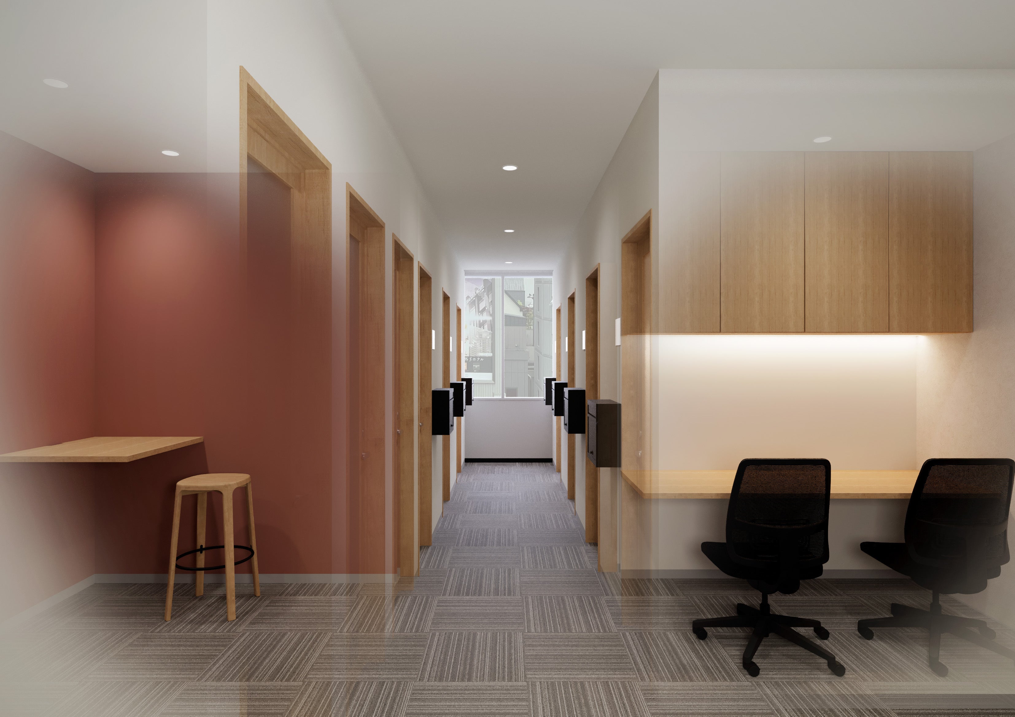 音環境や照明、素材感に加え、グリーンなどの自然要素にもこだわり、 “居心地の良さ” と “心身の健康” に配慮した空間づくり。長時間の滞在でもストレスを感じにくい設えです。