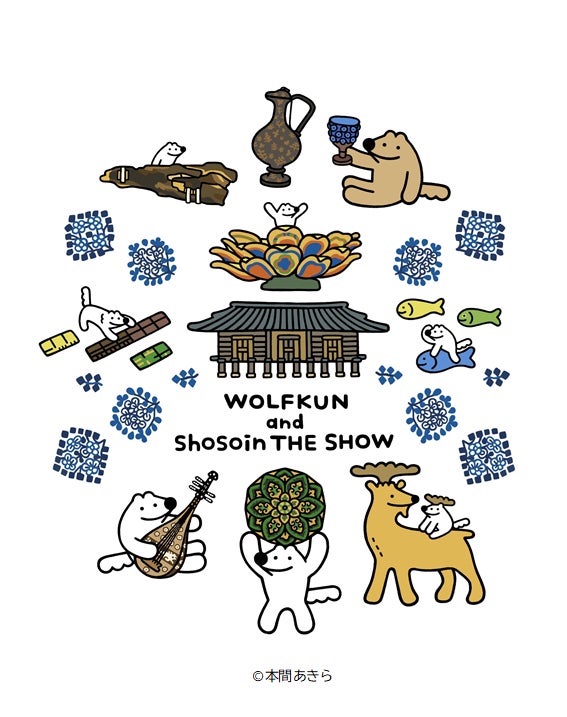 「正倉院 THE SHOW」と「やさしいおおかみウルフくん」がコラボレーション。本間あきらさんが描きおろした正倉院宝物とウルフくんのかわいいイラストが、鑑賞ワークシートやグッズとして登場!