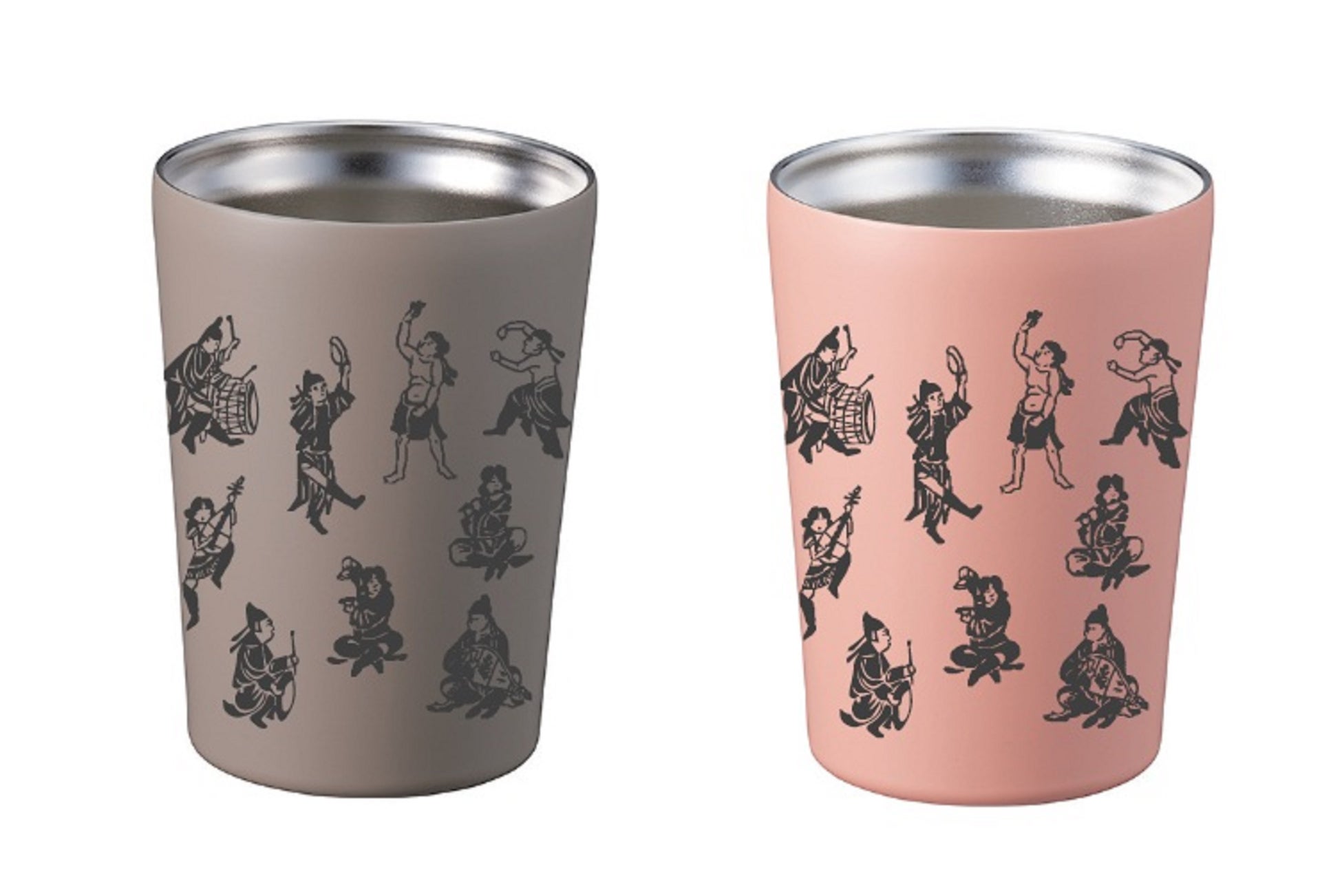 正倉院に伝わる遊戯具「墨絵弾弓(すみえのだんきゅう)」には曲芸をする人たちがユーモラスに描かれています。仕事や家事の息抜きにぴったりな、遊び心溢れるタンブラーを、ピンクとベージュの2色でご用意しました。