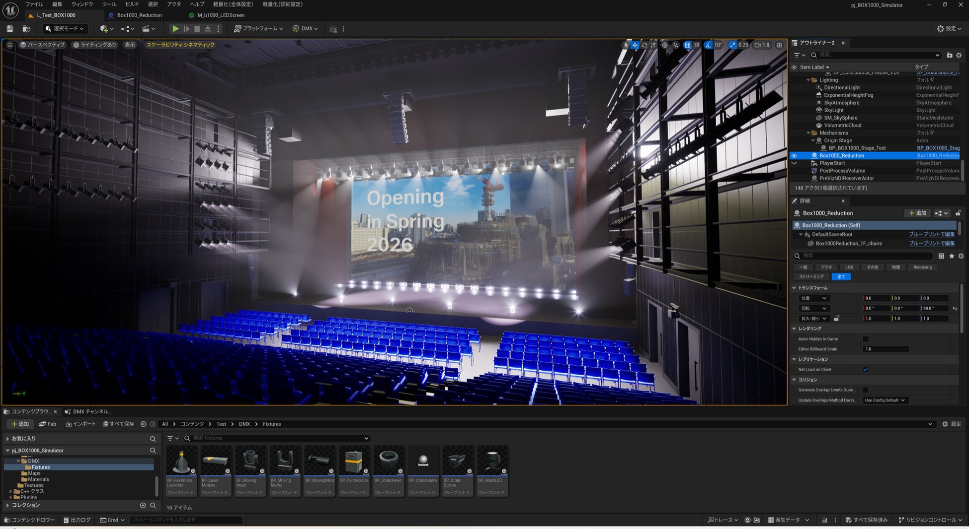 株式会社stuと共同開発したシステムにより、舞台上の制御信号を記録・再演が可能。また仮想空間での精密な本番シミュレーションが可能。リハーサル効率と本番の安定性を大きく向上させます。