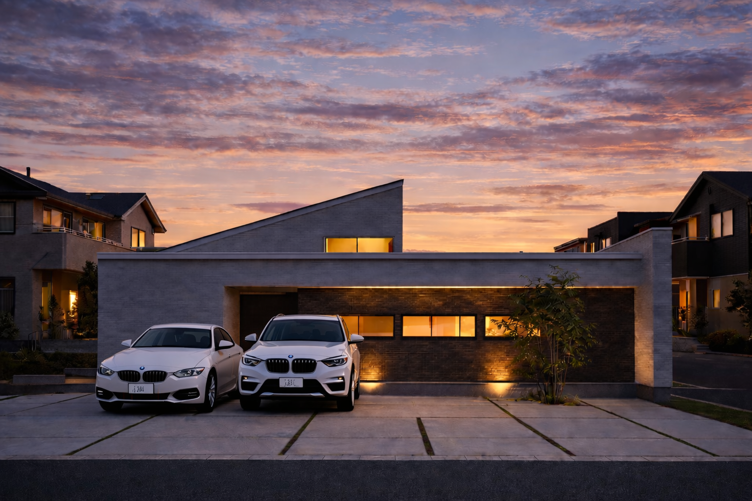 そこにアクセントとして組み合わされた「傾斜屋根」が、シンプルながらもダイナミックな表情を演出します。