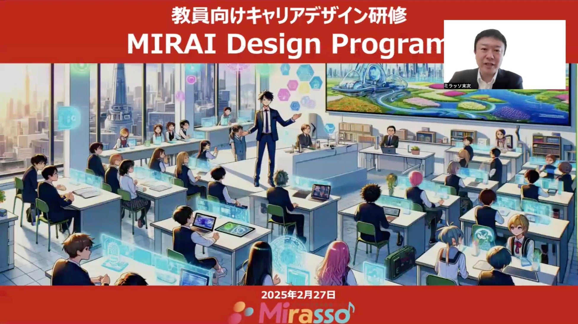 ミラッソ株式会社(本社:東京都渋谷区、代表取締役CEO:末次 達弘)は、2025年1月23日(木)と2月27日(木)の2日間にわたり、奈良市立都南中学校にて教員向けキャリアデザイン研修「MIRAI Design Program」を開催いたしました。
