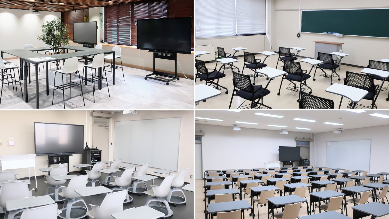 大講義室以外は机や椅子が移動可能で、個別作業・グループワーク・プレゼン形式など、授業スタイルに合わせて自由にレイアウトを変更できるようになりました。