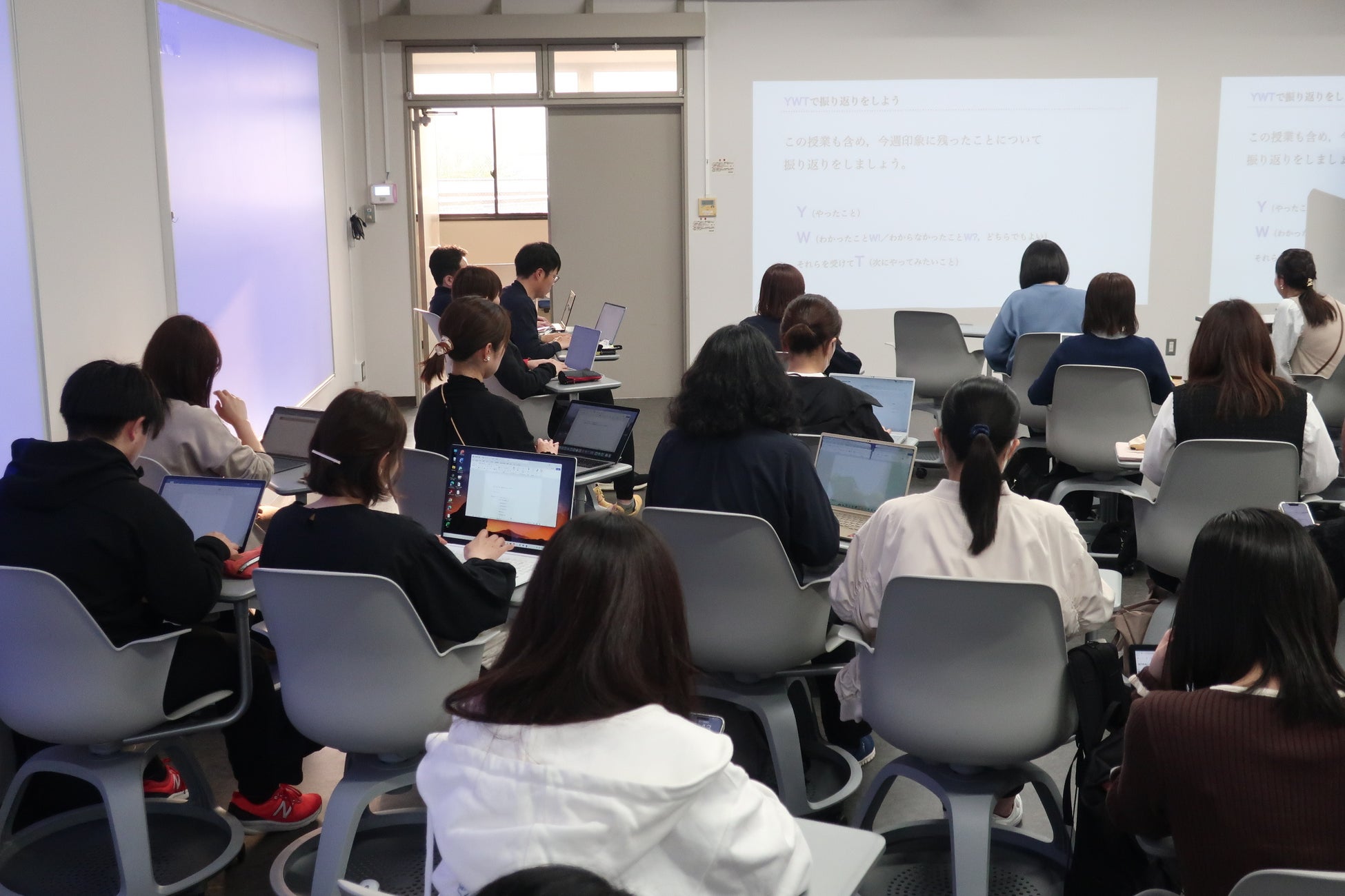 また、学生は個人端末を持参(BYOD)し、大学が付与したアカウントを活用して、資料共有・意見集約・振り返りを即座に実施できます。