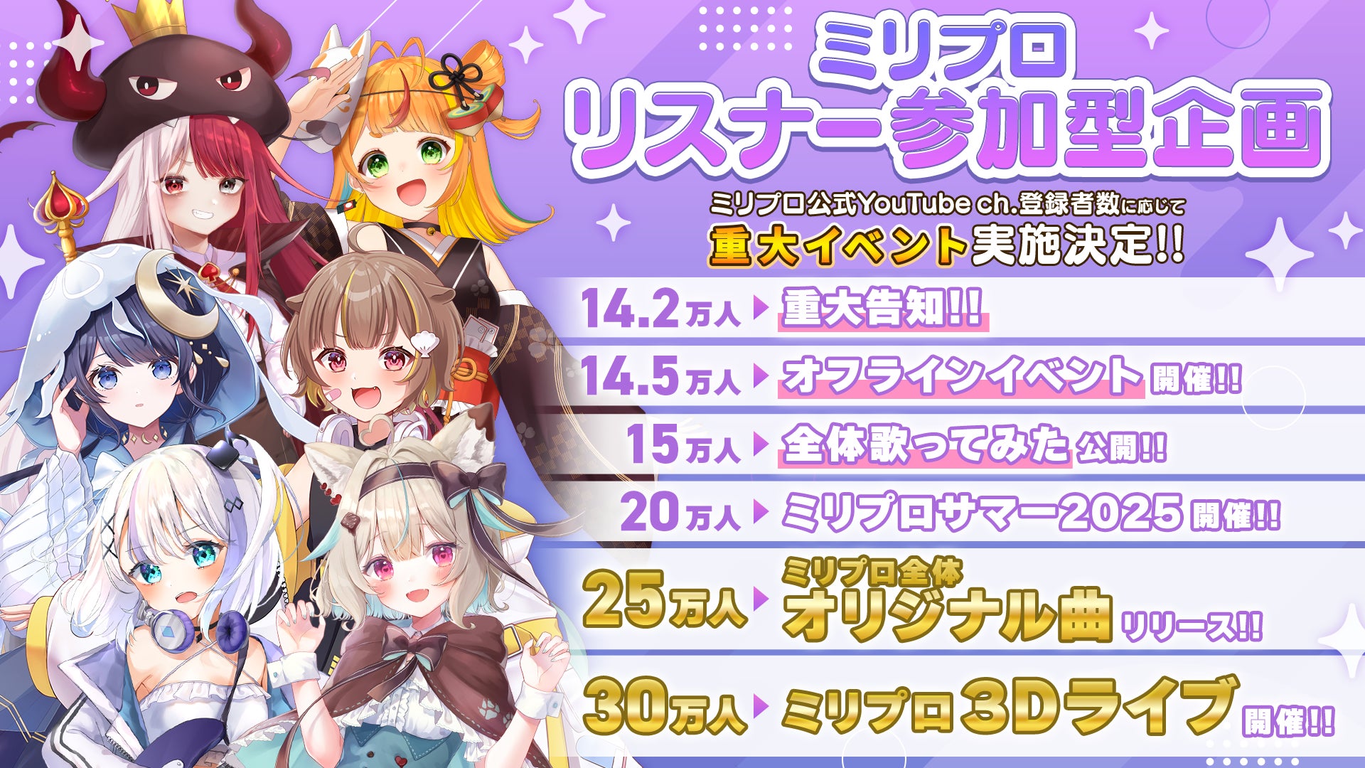 各企画の詳細につきましては、ミリプロ公式YouTubeチャンネルおよび公式Xにて随時発表いたしますので、続報にご期待ください。