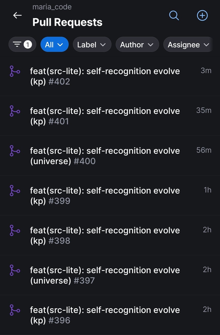 Pull Requestが生成され、修正が加えられ、自己認識や改善サイクルが更新されていく。