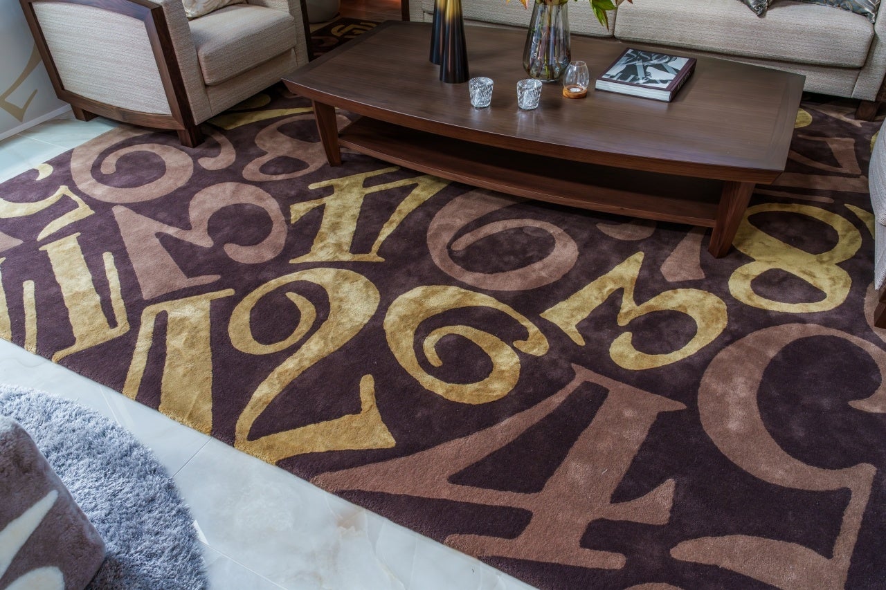 邸宅内ではトノウ カーベックスの曲線を取り入れたテーブルやチェア、ビザン数字をあしらった壁面デザインやラグ、ファブリックアイテムが配され、空間全体がフランク ミュラーの世界観に包まれています。