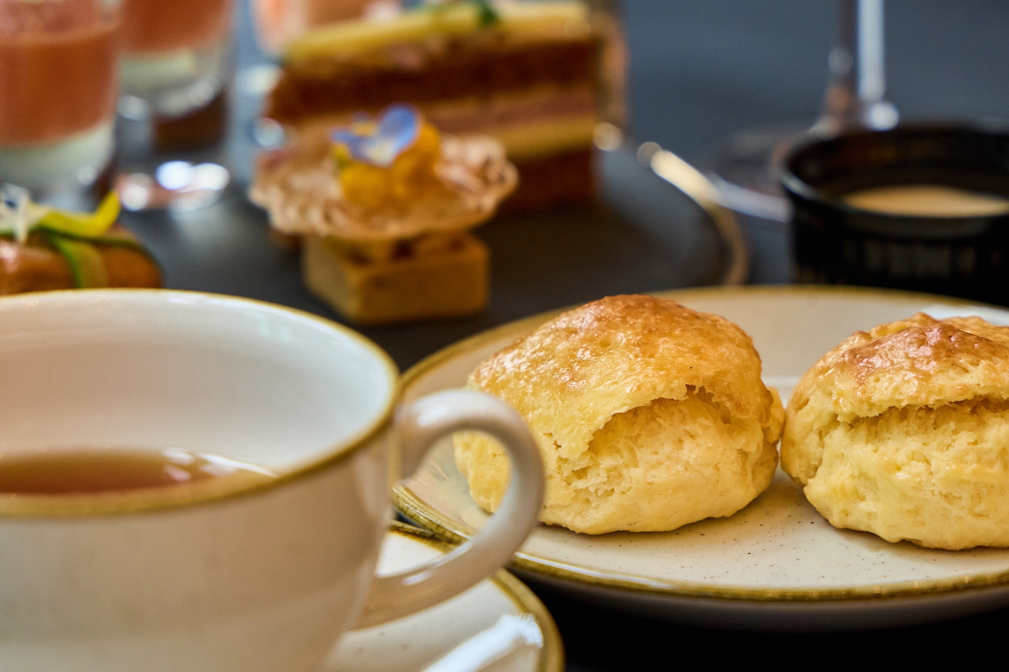 「銀座ダブルチーズバーガー」「桃の冷製パスタ」ほか、伝統的なアフタヌーンティーも提供、ホテル1階のレストラン&バー「Komyuniti(コミュニティ)」にてスタート