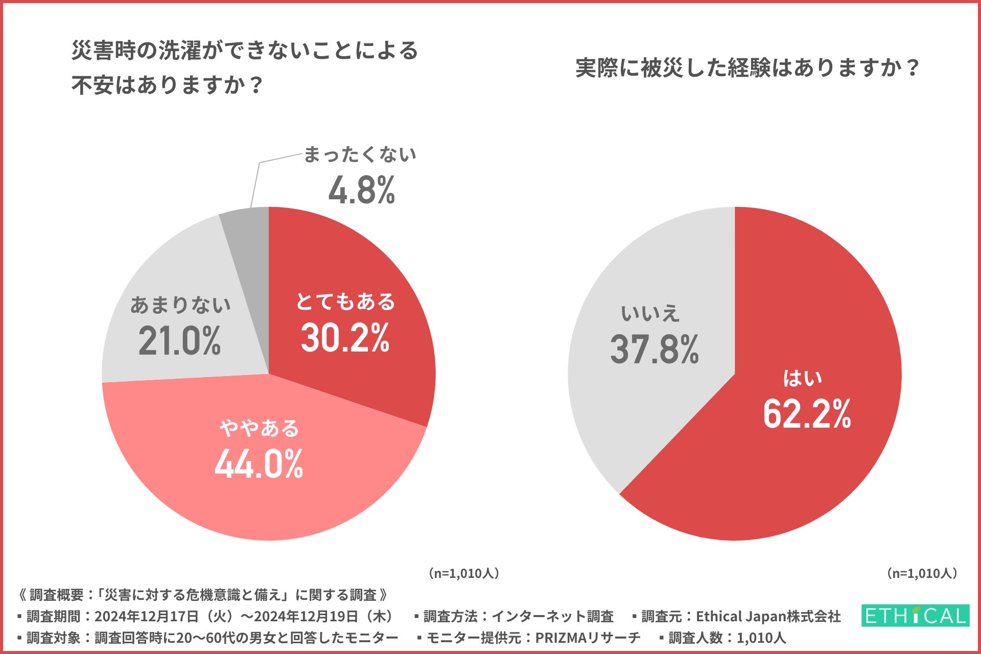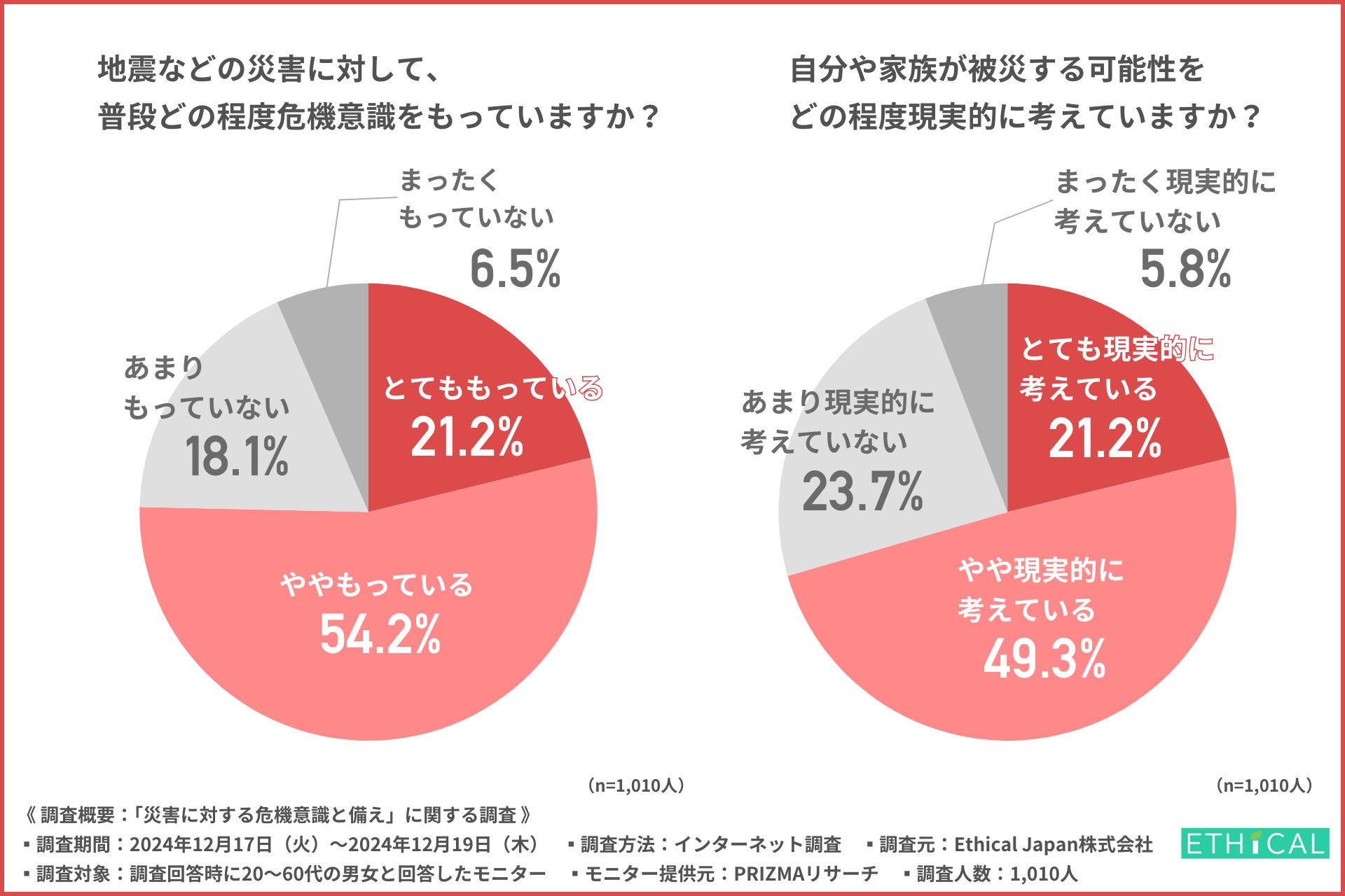 Ethical Japan株式会社(所在地:愛知県名古屋市、代表取締役:大野 隼輔)は、20~60代の男女を対象に、「災害に対する危機意識と備え」に関する調査を実施しました。