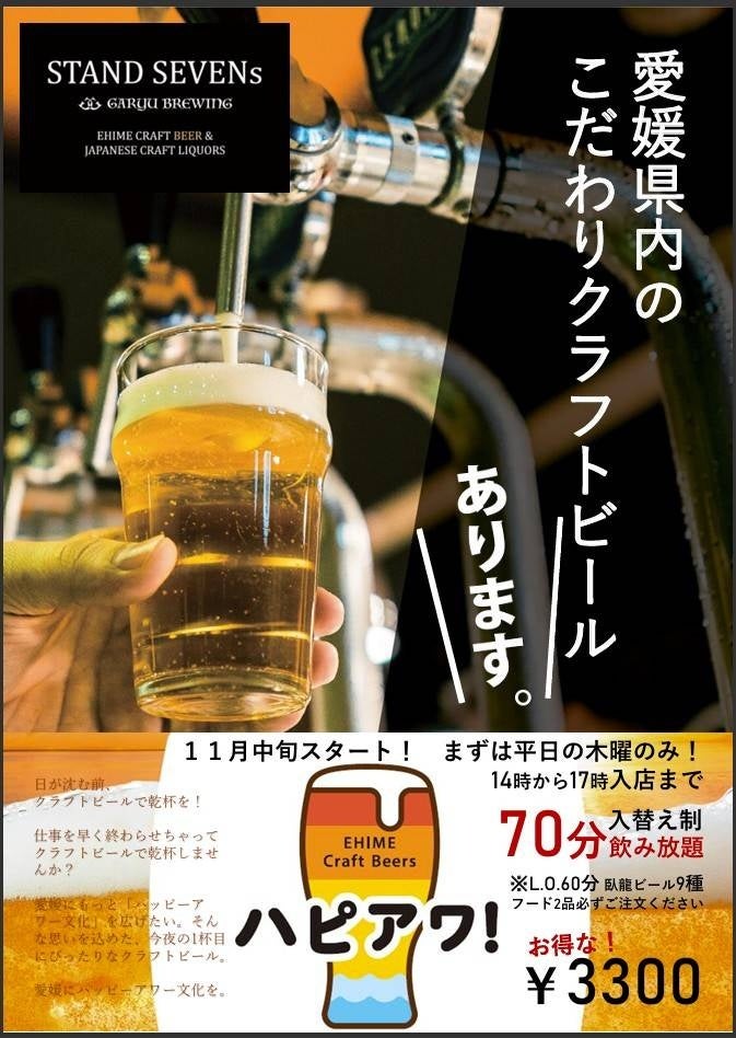 日本国内でも盛り上がっているクラフトビールの中で、さらに愛媛のクラフトビール文化も徐々に浸透してきており、クラフトビールをお得に楽しめる「ハッピーアワー」企画がスタートします!