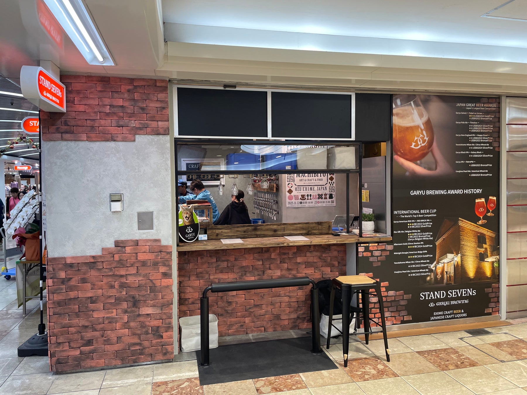 ハピアワ!プロジェクトに参加している、臥龍醸造がこの2025年秋にまつちかタウン内に7坪の立ち飲みスタイルのお店をオープンしたのがSTAND SEVENs GARYU BREWING。