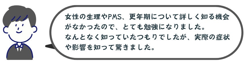 また、これまでタブーと捉えられてきた内容も、深く知ることで職場や家庭におけるコミュニケーションが変わったという方もいらっしゃいます。