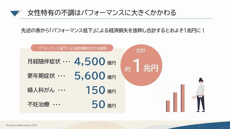 女性にはPMSや生理痛、更年期障害など特有の心と体の悩みがあり、その症状によって大きな労働損失が生まれています。