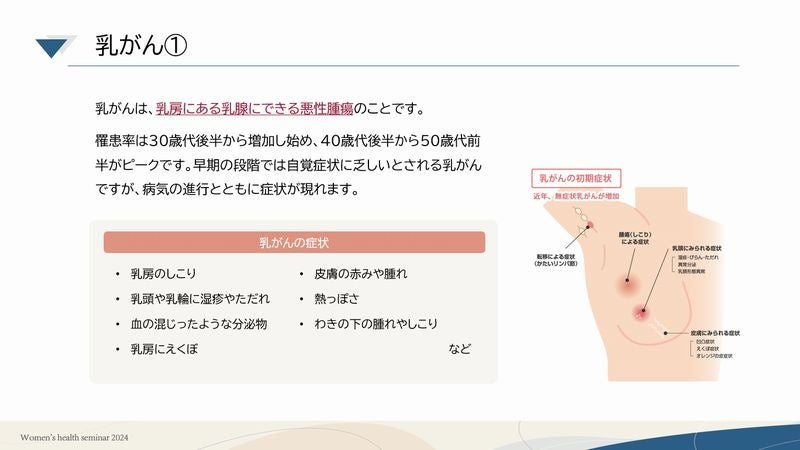 女性特有の心と体の課題を広く知っていただくために、「女性の健康」をテーマにセミナーや勉強会を行っています。