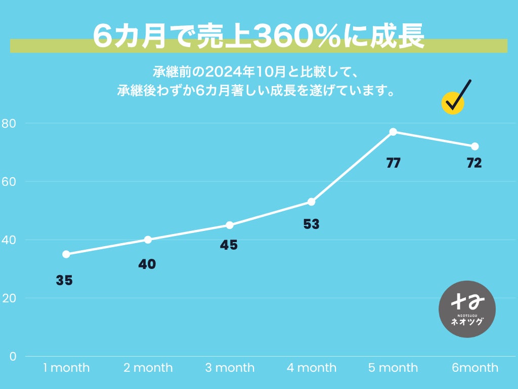 崎村商店は2024年11月、事業承継マッチング「ネオツグ」を通じて第三者承継を実現し、新たなオーナーのもとで再スタートを切りました。承継前の2024年10月と比較して、承継後、数ヶ月間で著しい成長を遂げています。