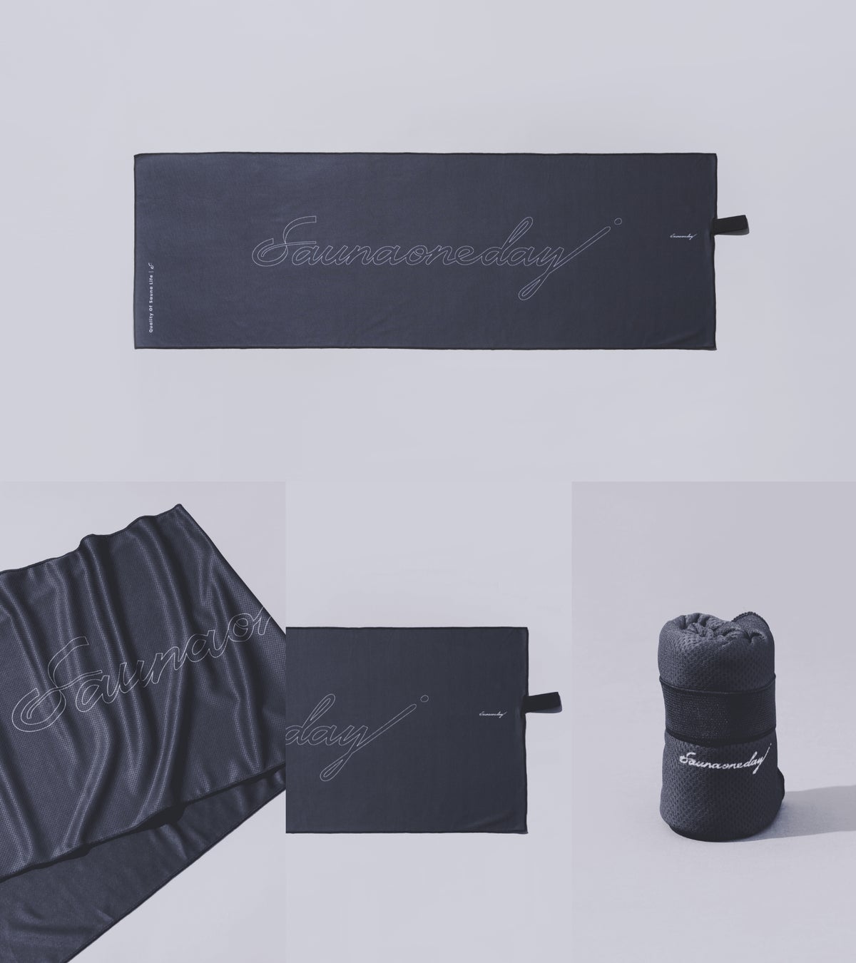 さっと手洗いをして干すだけで、次の日には乾いているから1枚持っていれば毎日使える。水に濡らして絞ると冷たくなって、サウナ上がりもひんやり気持ちいい。薄手で程よく大きめのサイズ設計は、首にかけた時の収まりが良く、体に巻いて使うこともできる。ループバンドでコンパクトにまとめられるパッカブル仕様。