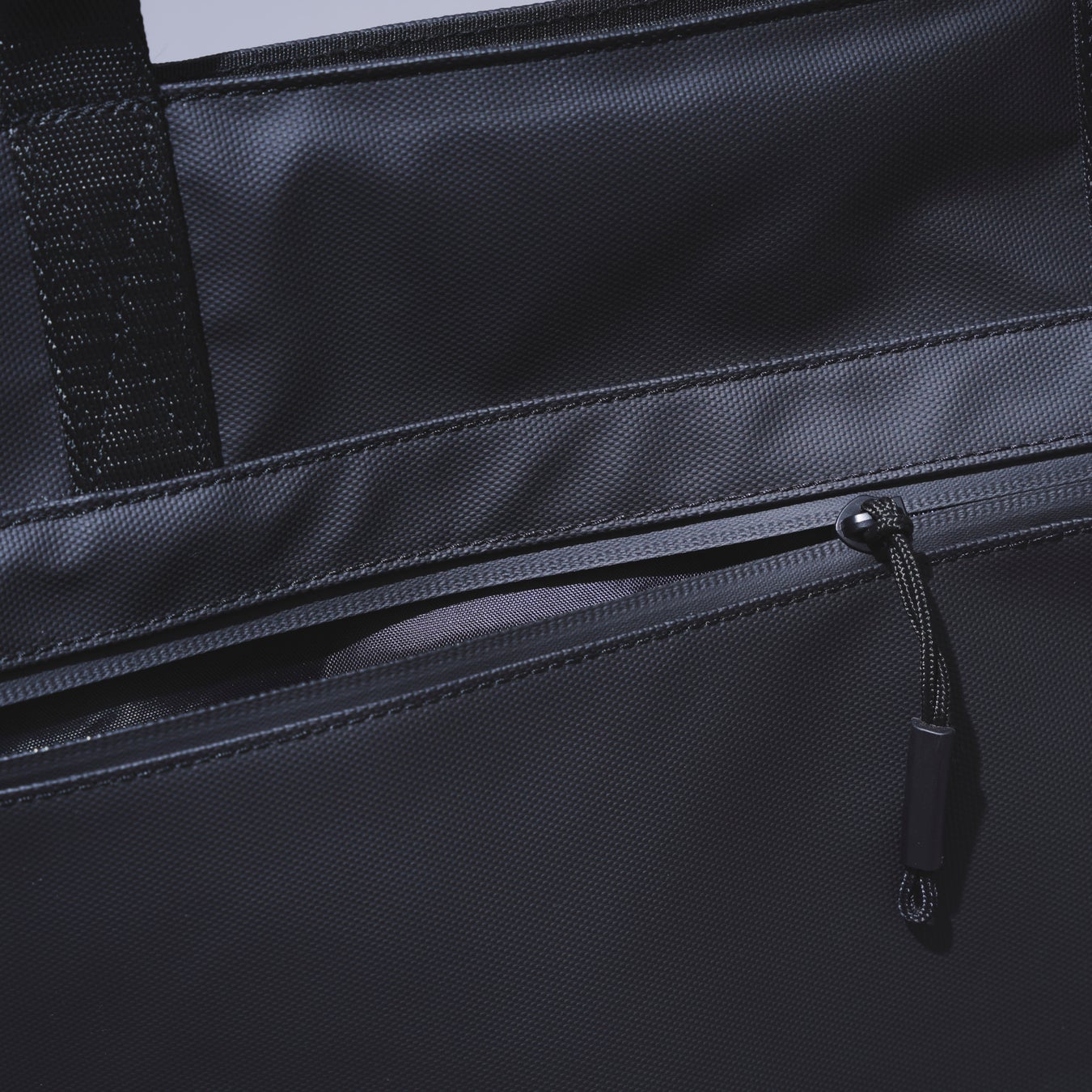 外側のメインファブリックにはナイロンオックスフォード900Dを採用。強度と高級感があり、撥水効果もある。そして両サイドについている大型のジッパーポケットの内側は水を弾くコーティング加工のポリエステル素材で、濡れたタオルや水着などを直接入れて持ち運ぶことができる。ジッパーラインも防水性のあるTPUでカバーされている。