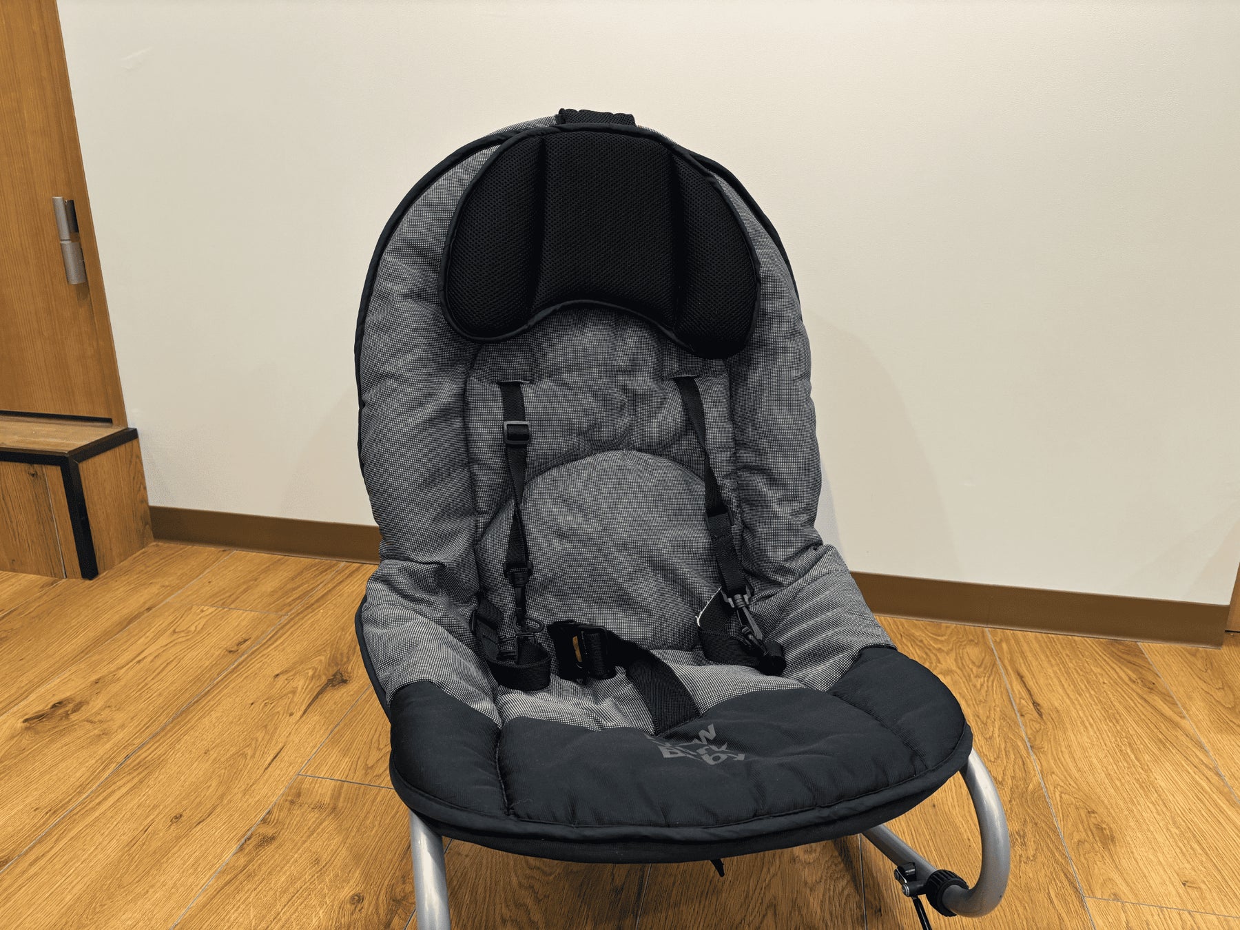 ベッドが苦手なお子様のために、バウンサーもご用意しております。