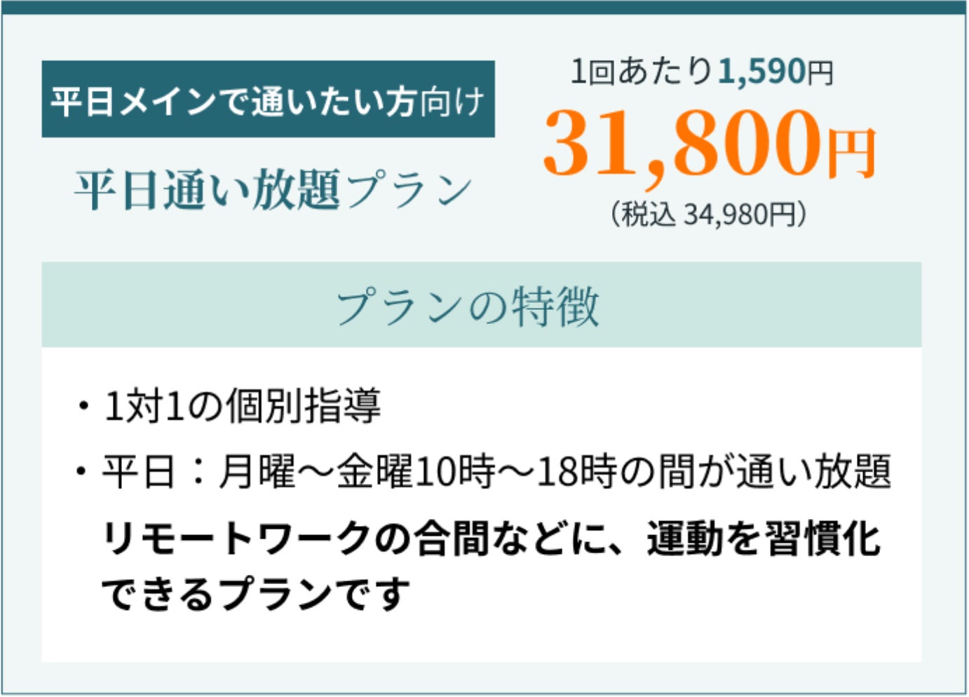 従来のパーソナルジムと異なり、トレーニング時間は30分から選択可能。