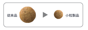 そしてこの度、同製品は、従来の栄養バランスはそのままに、キブル(粒)サイズを小粒化した「犬用 腎臓サポート+低分子プロテイン 小粒」として生まれ変わります。小型犬飼育が広がっている日本では、小型犬にとっても食べやすいキブルサイズの食事療法食へのニーズが高まっており、同製品は、健康上の悩みを持つ様々なサイズの犬の栄養管理に貢献しながら、動物病院をサポートしてまいります。