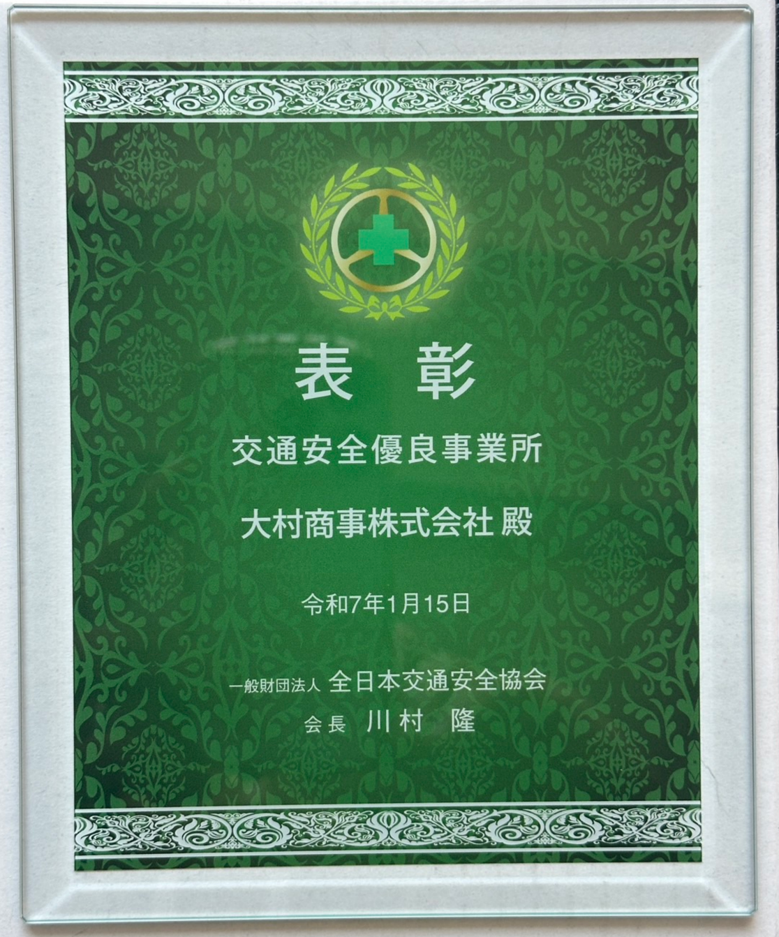 大村商事株式会社は「交通安全優良事業所」として表彰されました