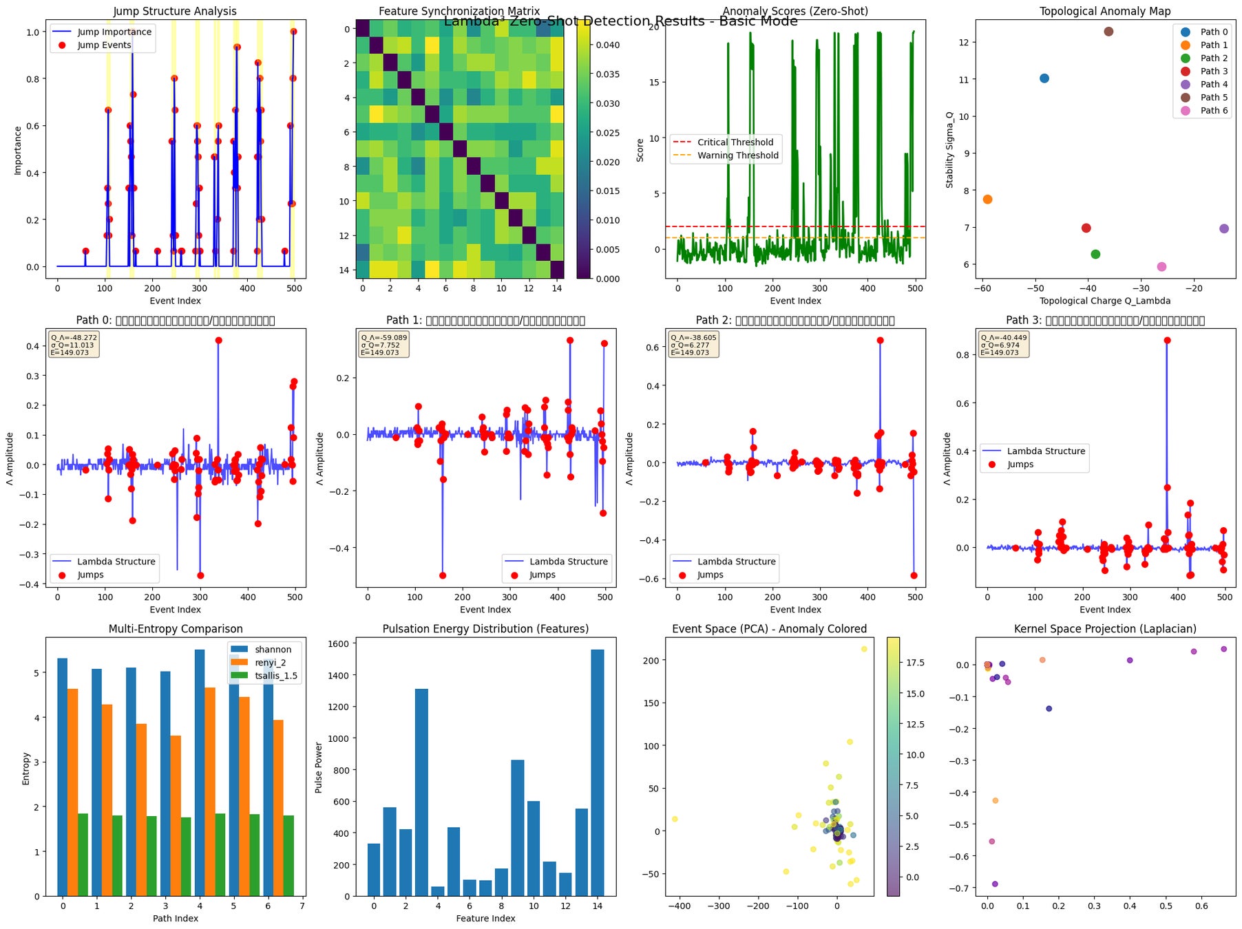 このテストで従来のAI(Isolation Forest、Autoencoder等)は60〜80%が限界と言われており。Lambda³ ZERO-SHOTだけが“この地獄”で93%を記録しました。しかもLambda³ ZERO-SHOTは一切の事前学習もチューニングもなし。“物理原理のみ”で未知の異常パターンを次々検出したのです。