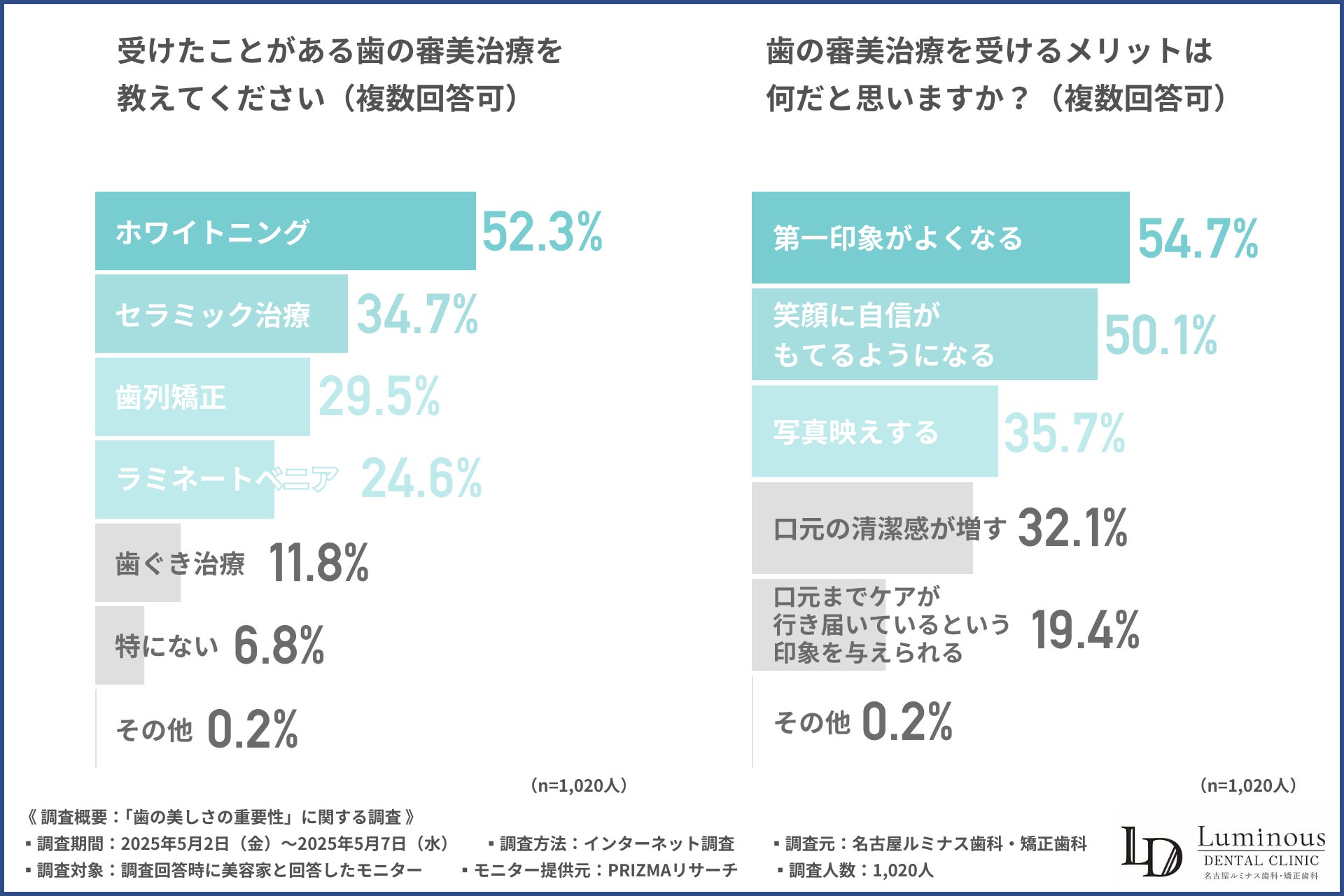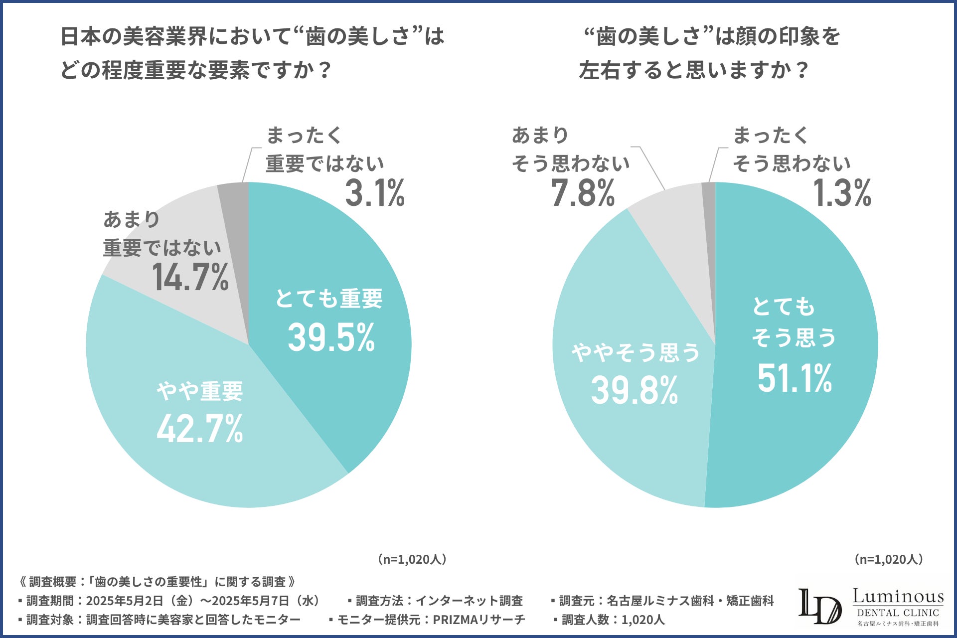 そこで今回、医療法人清翔会 名古屋ルミナス歯科・矯正歯科(https://www.nagoya-luminous-official.com/)は、美容家を対象に「歯の美しさの重要性」に関する調査を実施しました。