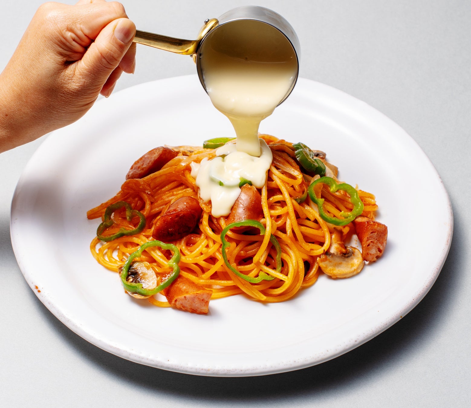 生パスタ+パン・サラダ食べ放題のランチビュッフェ。淡路島の食材をふんだんに使用したソース&淡路麺業様の生麺パスタをご用意。注目メニューはコンセプトメニュー「ドロっと」シリーズのひとつ、チーズソースをかける「ドロっと」ナポリタンです。