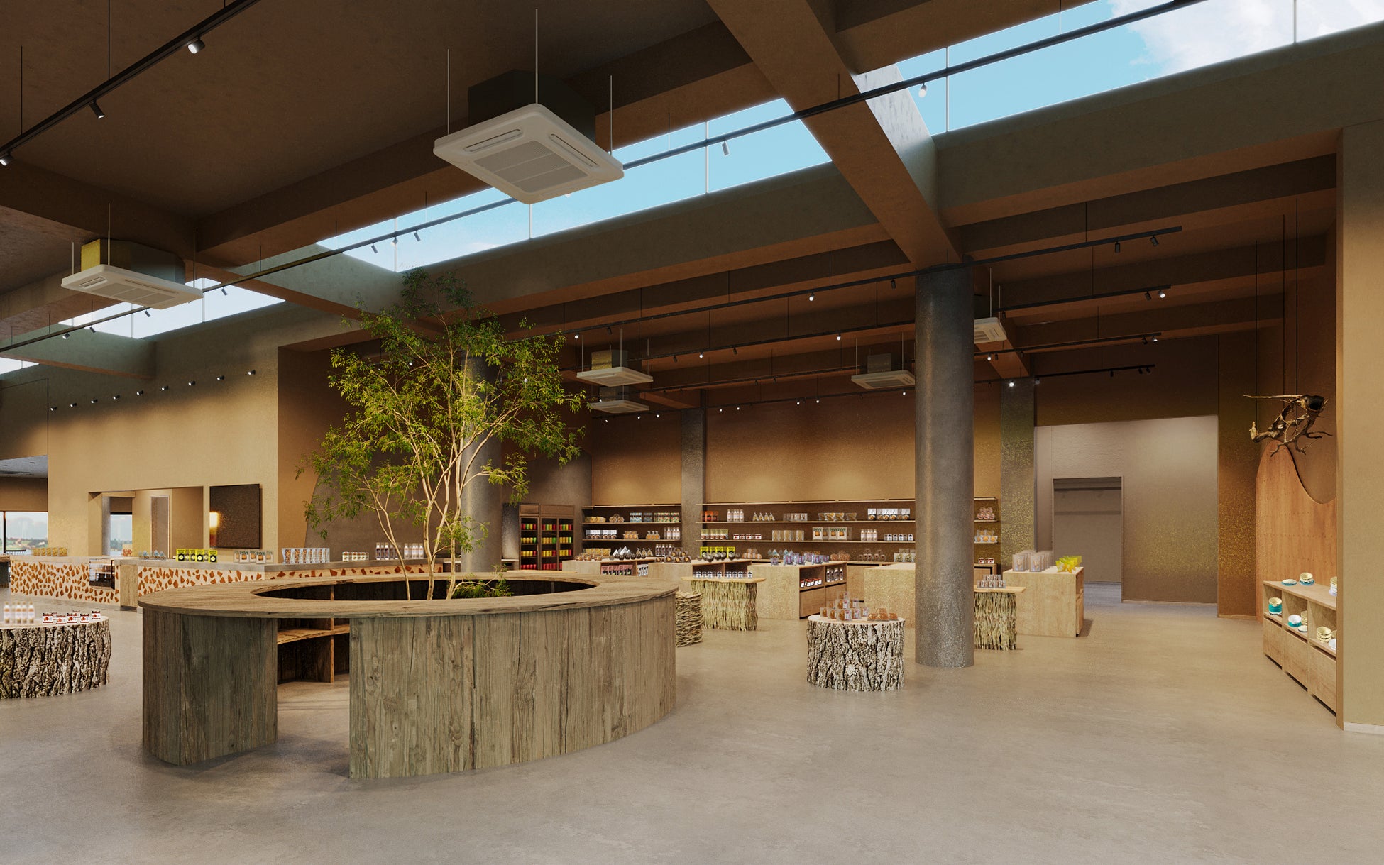 また、SHOPやCAFEなどが入る施設は、土をイメージした外壁で地中から盛り上がってきたようなデザインです。遮熱性や断熱性を高め、環境負荷を低減しており、AWAJI EARTH MUSEUM全体でリジェネラティブなモデルを提案しています。