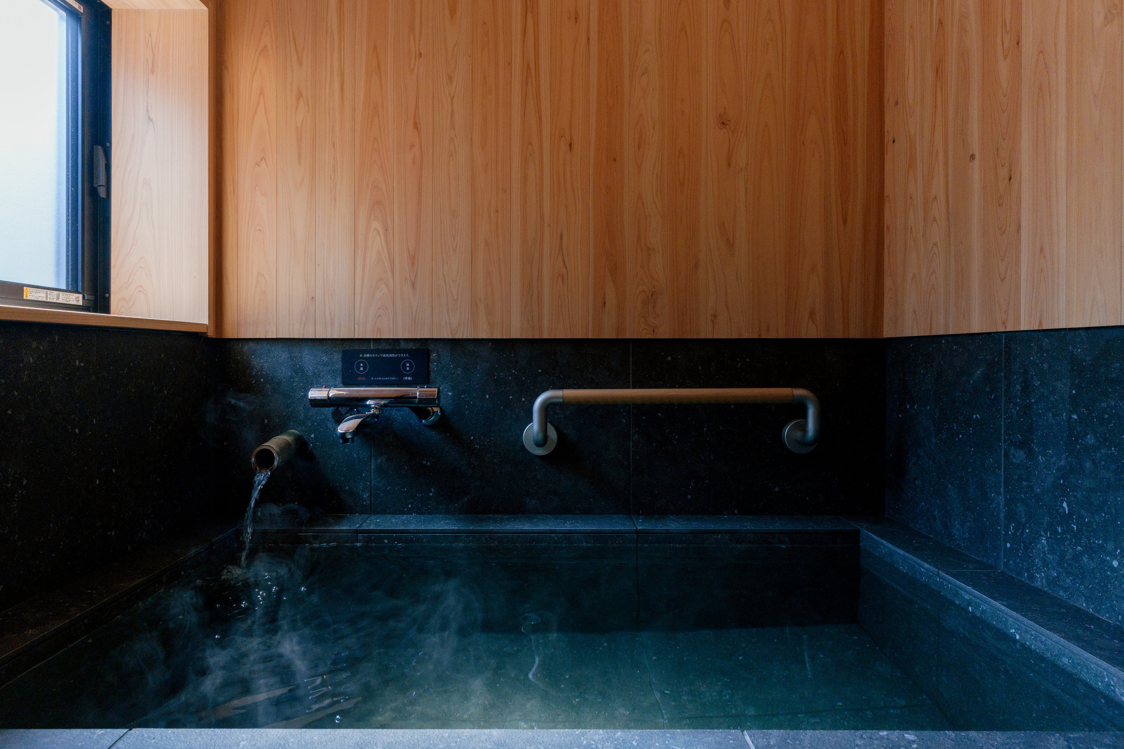川棚温泉のお湯は「ナトリウム・カルシウム塩化物泉」。しっとりつるつるのお肌に導く美人の湯と呼ばれています。愛犬と楽しい時間を過ごしたあとは、お部屋の温泉でご自身もゆっくりと癒しのひとときをお楽しみください。