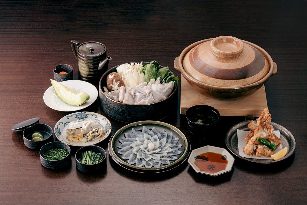 ふくの本場下関のとらふくを、お多福調理人の技で表現する贅沢なフルコース。三日間熟成したふく刺し、おもてなし係が卓上で作りあげるふくちりをはじめ、ふく皮の前菜、唐揚げ、ふく吸、〆の雑炊まで、とらふくの旨みを余すことなく味わえます。