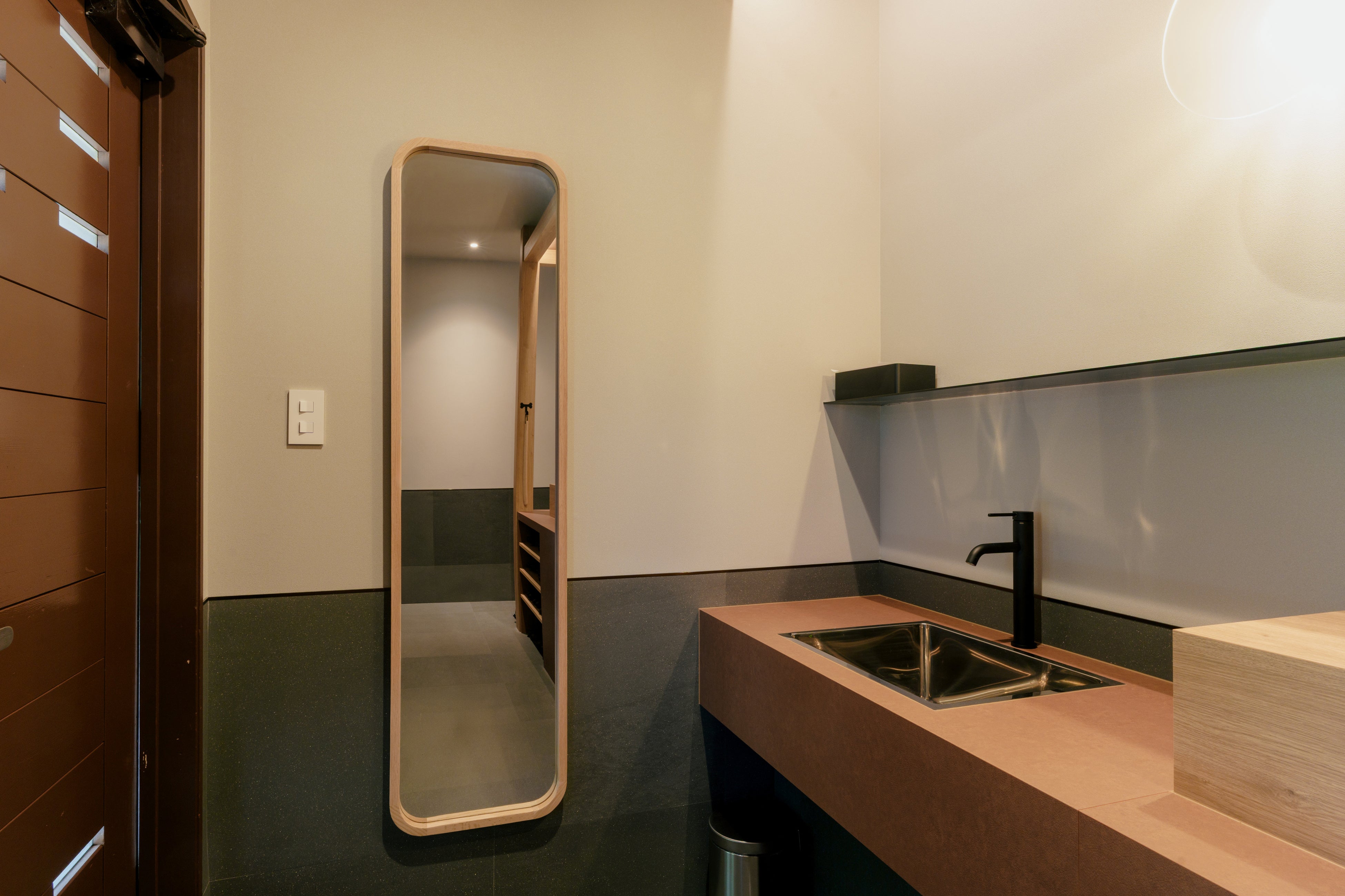 建物が立つのは傾斜地。レセプションからレストランまでのアプローチは、 狗留孫山の山道を思わせるスロープになっています。 バリアフリー設計のため、カートや車いすでの移動も快適。 すべての家族にやさしい空間です。