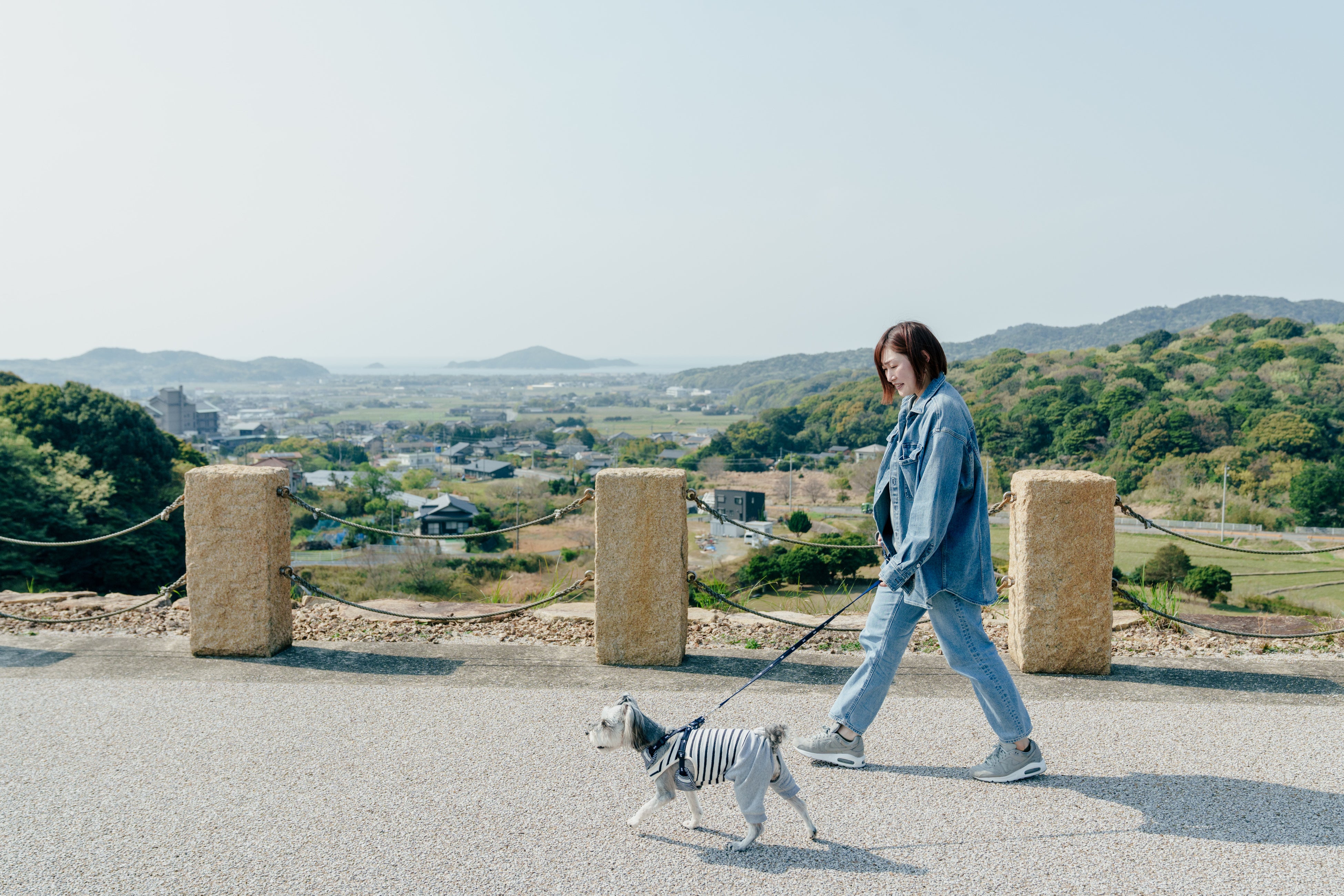 棚の自然を満喫できるお散歩コースで、愛犬と一緒にリフレッシュ。響灘にぽっかり浮かぶ厚島を見渡すことができる青龍湖こと舟郡ダム。1周が1500mの周回道路があり、わんちゃんとのお散歩にもぴったり。