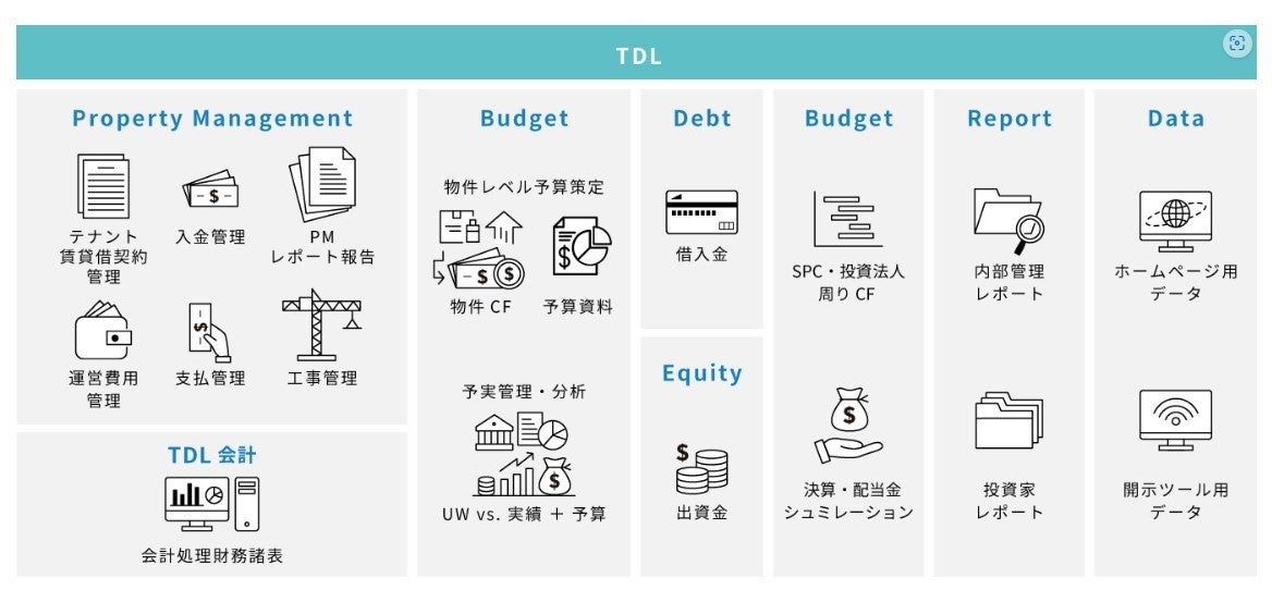 TDLは不動産投資における購入から売却までの一連のプロセスを一気通貫でサポートするERPです。