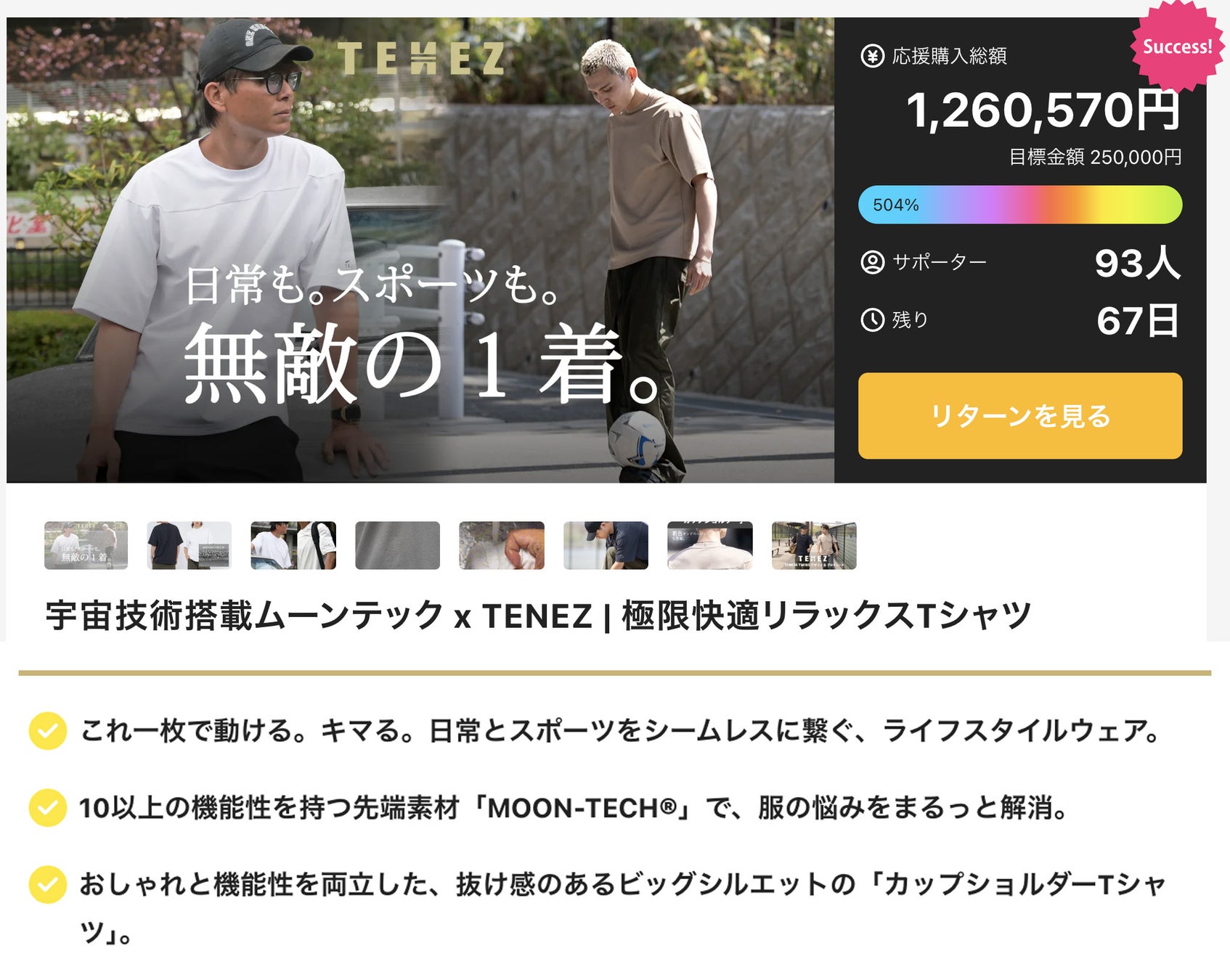 プロジェクト名:宇宙技術搭載ムーンテック x TENEZ|極限快適リラックスTシャツ