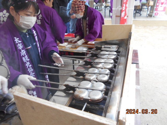 (一社)太宰府観光協会(福岡県太宰府市宰府3‐2-3、会長:不老安正)と天満宮門前会(同、会長:髙田由美子)は、太宰府天満宮にたくさんの参拝客が訪れる観梅時期に「太宰府天満宮門前まつり」を開催し、参拝客のおもてなしに努めてきました。最終日の3月20日(木、春分の日)には、太宰府天満宮の絵馬堂で「門前まつりフェア」を開催。太宰府の伝統民芸品「木うそ」の無料絵付体験や古代米入りの珍しい「梅ヶ枝餅」の無料配布など、特別な体験をご提供します。