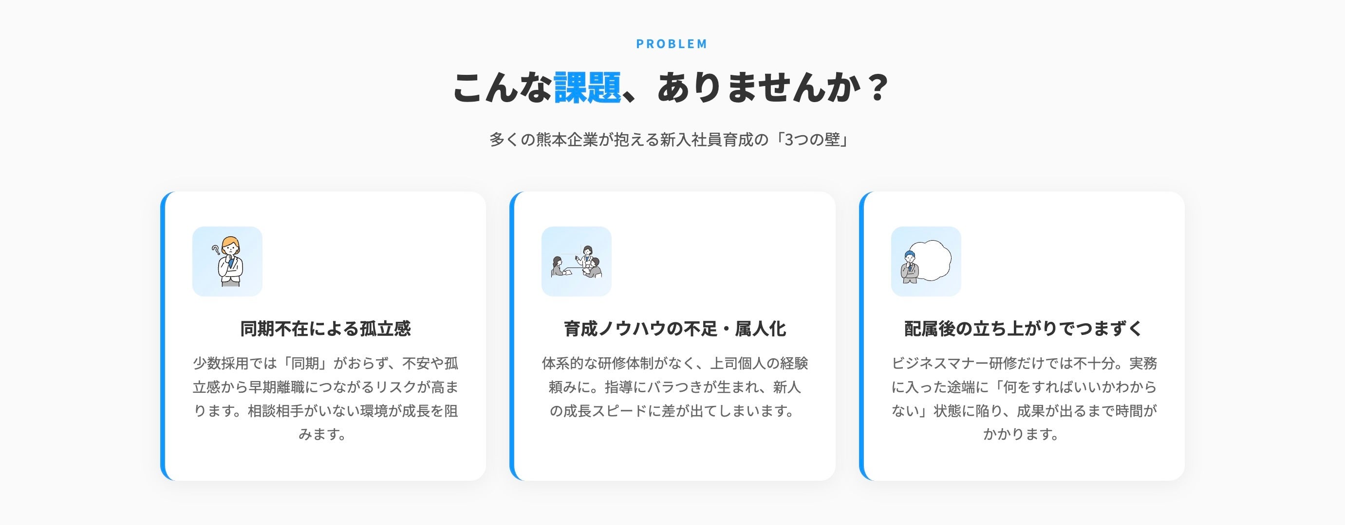 熊本県内の多くの中小企業や成長企業では、新卒採用人数が1〜数名にとどまり、自社単独での入社式や体系的な新入社員研修の実施が難しいケースが少なくありません。