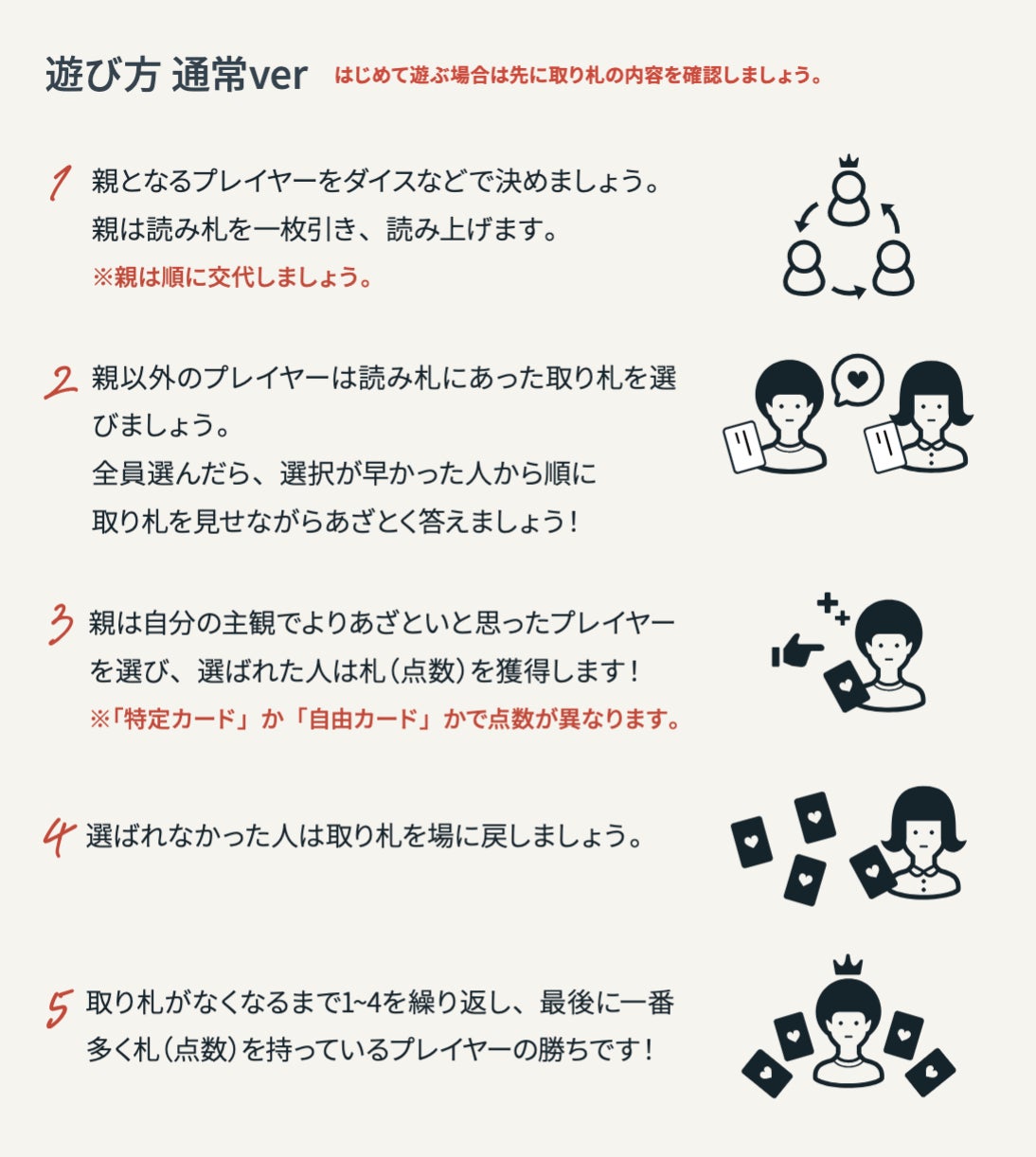 『あざとカルタ』は、読み札に対して一番"あざとい"回答をしたプレイヤーが勝利となる、大喜利系ボードゲームです。