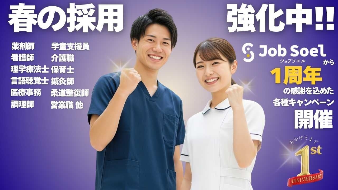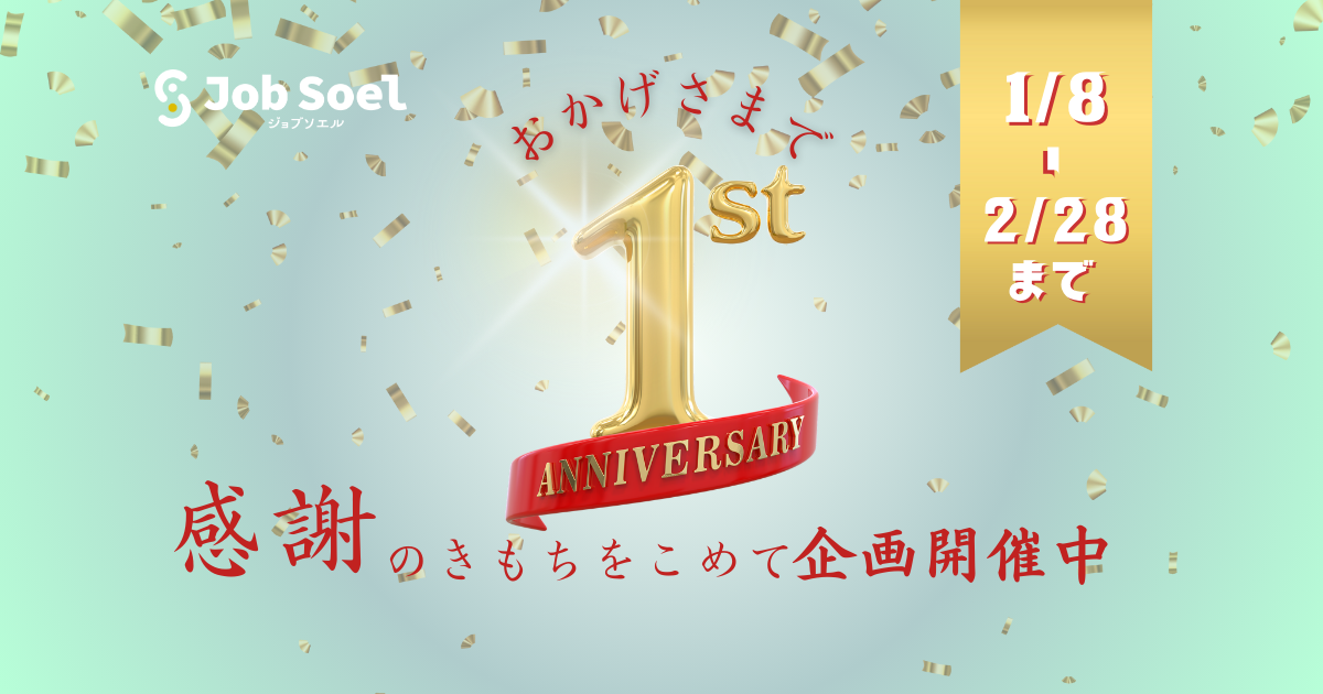 株式会社HIROグローバルホールディングス(本社:岩手県盛岡市、代表取締役:臼沢宏幸)が運営する、医療・介護・福祉分野に特化した求人プラットフォーム「Job Soel(読み:ジョブソエル)」は、2026年1月にサイト開設1周年を迎えました。これを記念し、日頃より医療・介護・福祉の現場を支えている皆さま、ならびに採用活動を行う事業者・企業の皆さまへの感謝の気持ちを込めて、2つの1周年記念キャンペーンを同時開催いたします。