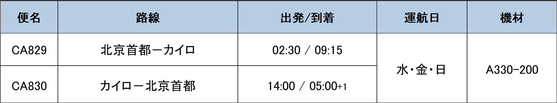 北京首都(PEK)⇔ カイロ(CAI)新規就航